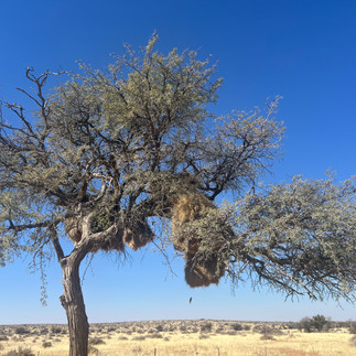 We stop by a Tropic of Capricorn sign to admire a sociable weaver next, a cacophony of small birds diving back and forth below the nest.