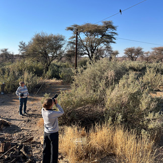 Thick, green grasses are adorned with noisy, busy birdlife. Rock dassies scatter as we approach, heavy dragonflies buzz around us. Weaver nests hang from reeds either side of a stream still trickling down the gorge into wide pools which go silent as we approach. Wait, the birds are still chirping, so what is the noise which stopped - are those frogs? It is the last thing we expected on the edge of the desert, but as we peer into the pool, there they are – enormous tadpoles, some with legs already, swimming away towards the shelter of the reeds. Johanna later tells us that they are not a freak species, but that their metamorphosis is delayed due to a lack of certain nutrients, and that they do not grow much more as frogs. The noise must have been from their already-transformed brethren.